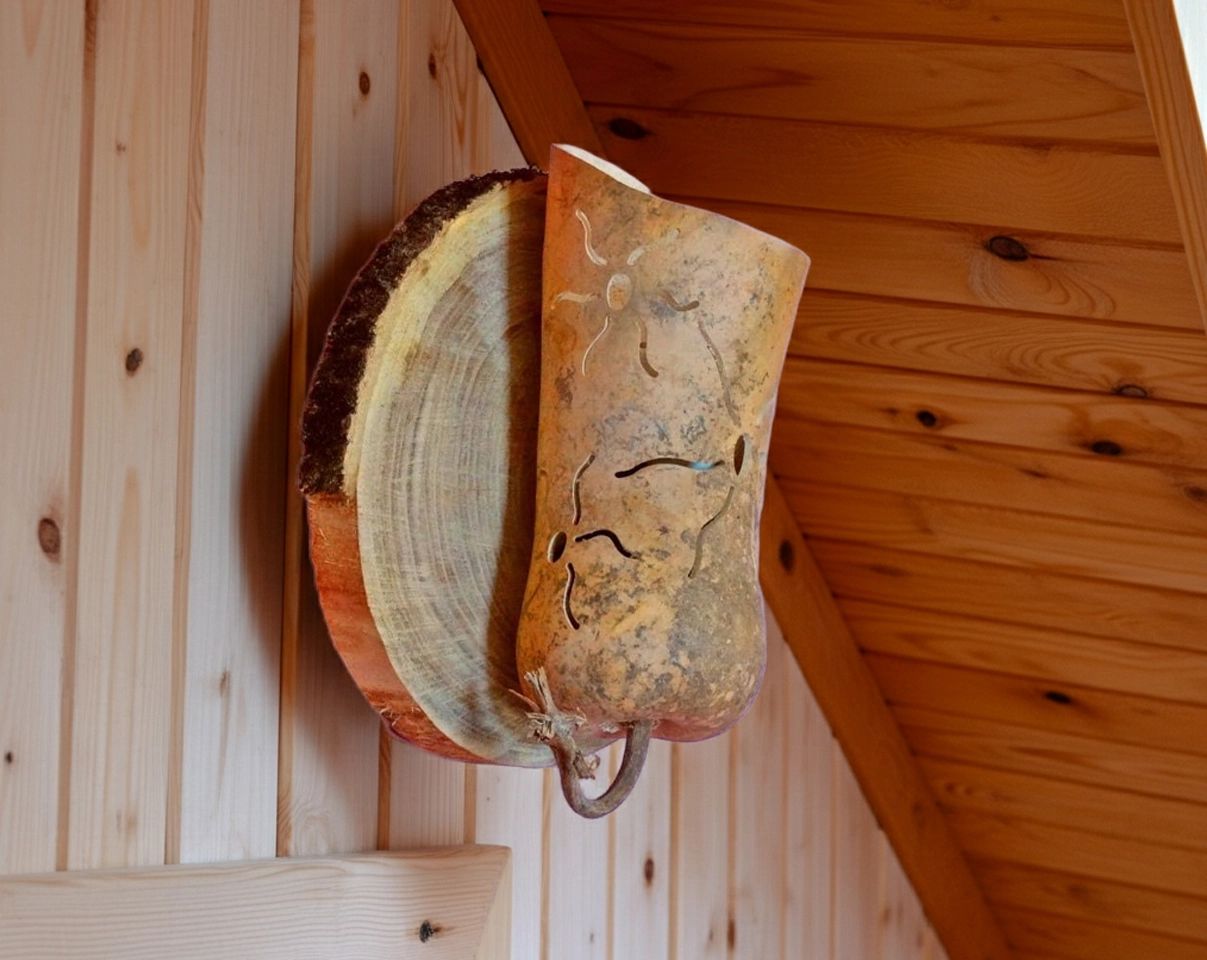 Descubre la belleza artesanal y la calidez natural con nuestro aplique de pared original Ekhi. Hecho a mano con calabaza natural y madera.