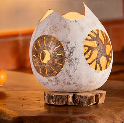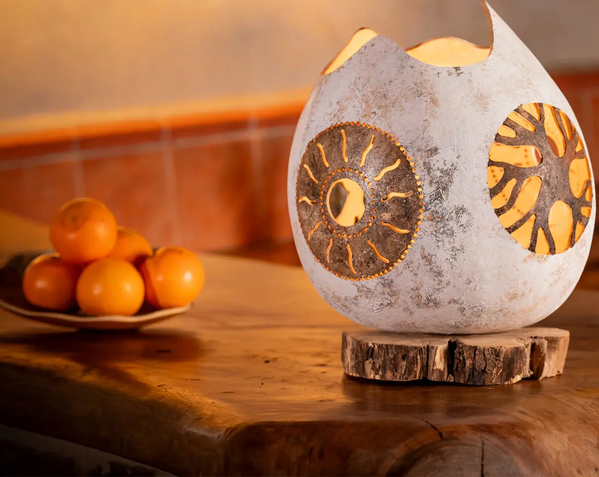 Con sus manos habilidosas, Kuia talló una calabaza, dándole la forma de las ramas del árbol que tanto le había inspirado. Creó una lámpara de mesita de noche única, a la que llamó «Usuar».